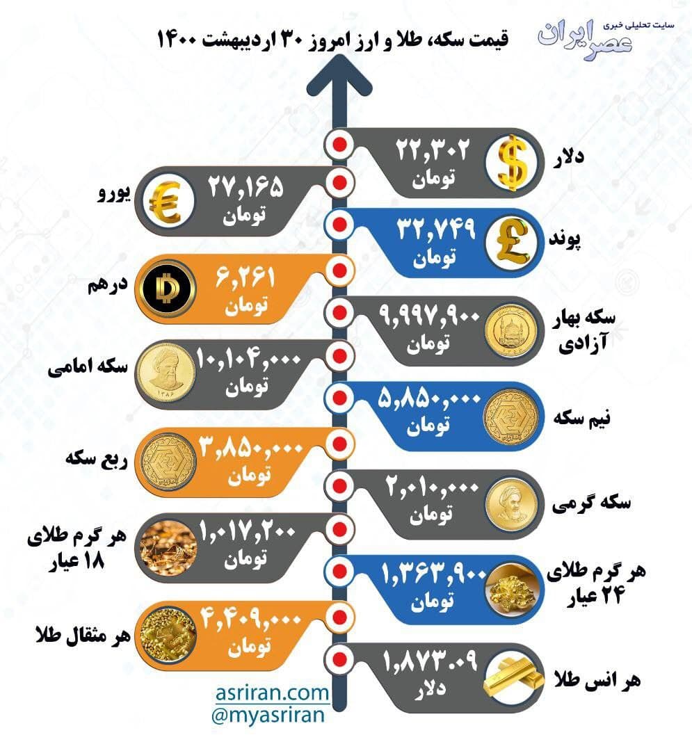 قیمت سکه  و دلار امروز ۳۰ اردیبهشت