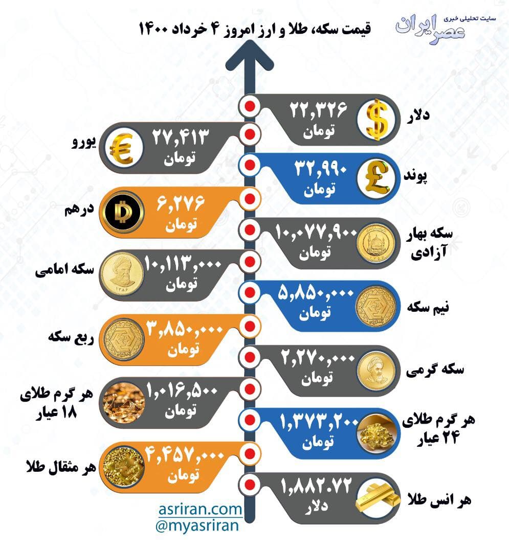قیمت سکه، طلا و ارز سه شنبه 4 خرداد