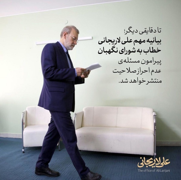 لاریجانی در شبکههای مجازی اعلام کرد تا دقایقی دیگر بیانیهای خطاب به شورای نگهبان صادر میکند.