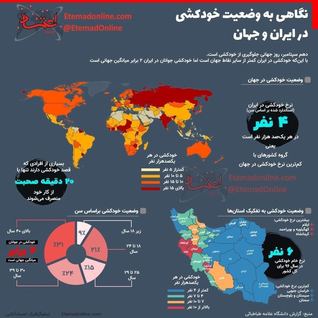 وضعیت خودکشی در ایران و جهان (اینفوگرافیک)
