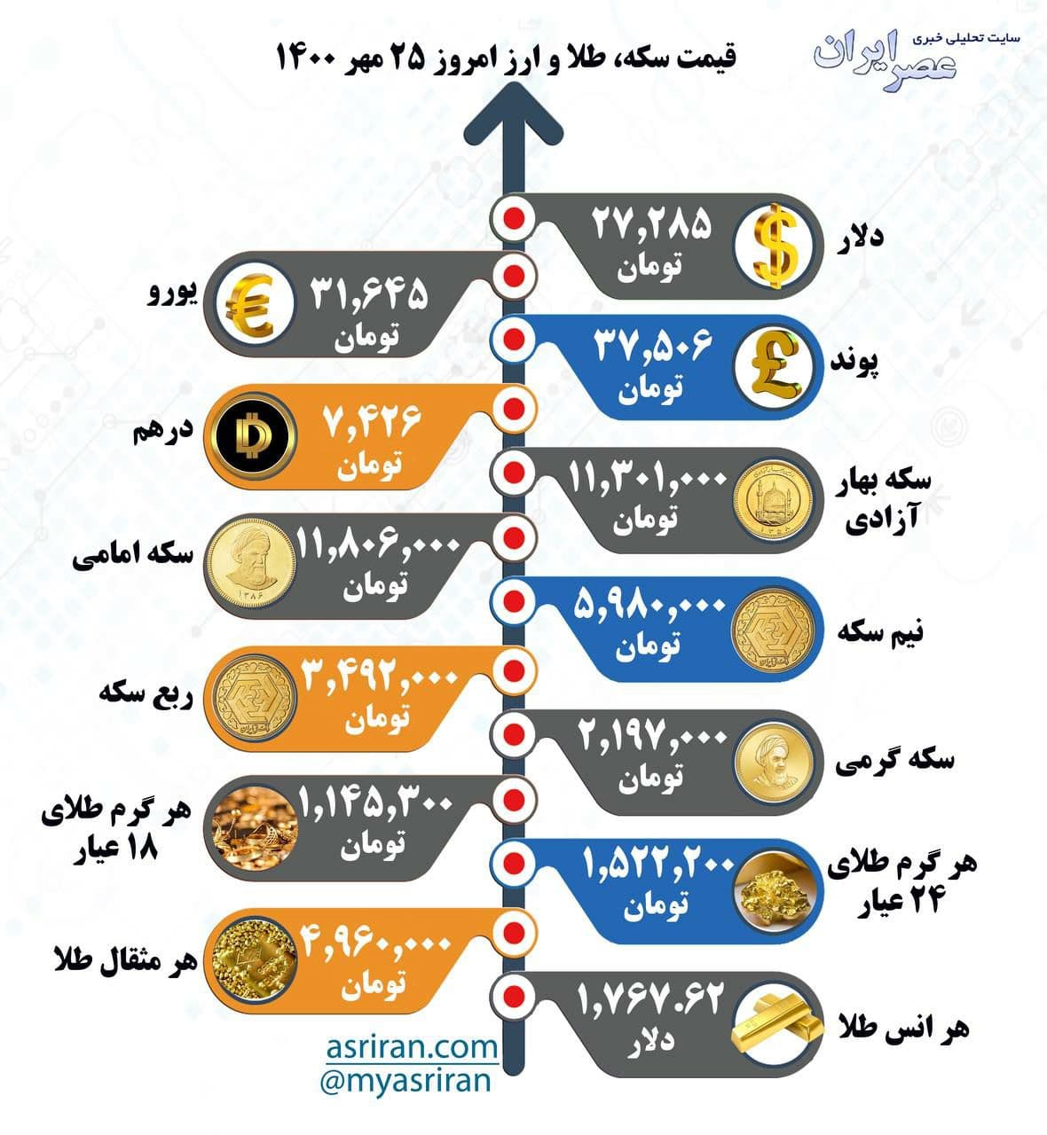 قیمت سکه، طلا و ارز ۲۵ مهر ۱۴۰۰ (اینفوگرافیک)
