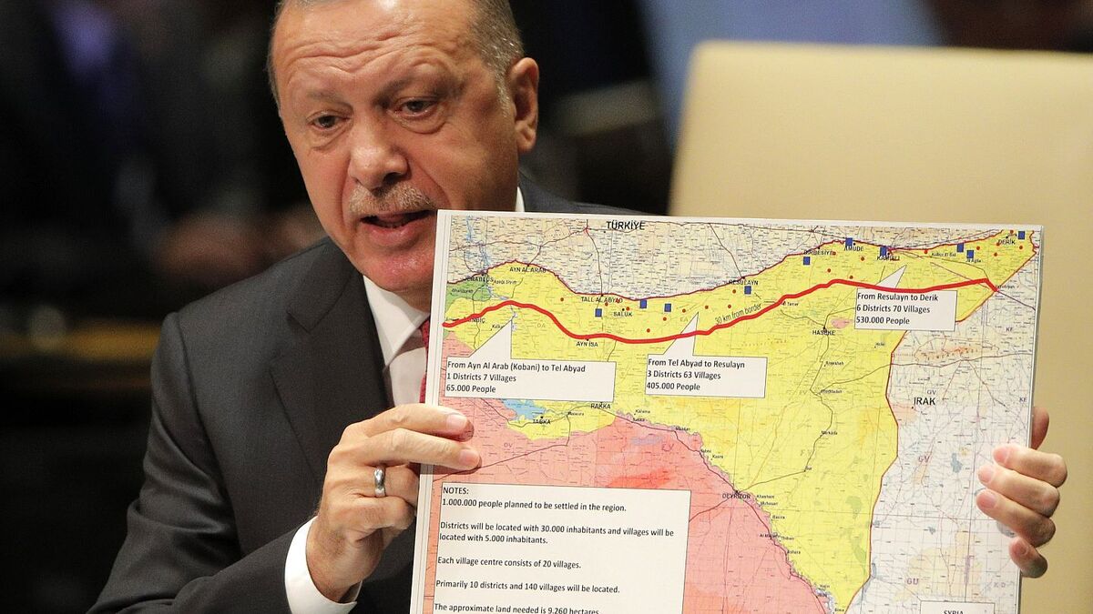 رئیس کشور ترکیه از مناطق تل رفعت، منبج و عین العرب (کوبانی) به عنوان قلمرویی در خاک سوریه که باید از وجود «تروریستها» پاک شود نام برد و بر ايجاد یک منطقه امنيتی به وسعت ۳۰ كيلومتر در مرزهای جنوبی کشورش تاکید کرد.