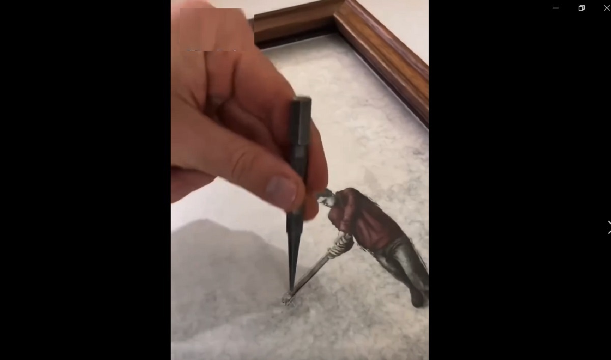 در این ویدئو هنرمند نقاش بعد از قاب کردن طراحی ها با ضربه انها را تکمیل می کند./منبع: آرت کانال